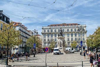 Bajo la figura de Camões hay otras figuras de menor tamaño también relacionadas con la cultura portuguesa. La estatua fue instalada en 1867.Este largo es muy frecuentado al anochecer pues sirve de punto de encuentro antes de ir a cenar o a tomar unas copas.