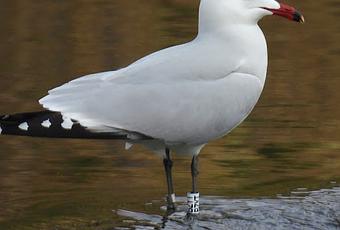 Dos gaviotas de Audouin en el Parc Fluvial Besòs tramo de Sant Adrià de Besòs , la presencia de gaviotas de Audouin no es muy frecuente a una distancia de un kilómetro de la costa. A pesar de que estas aves pueden volar hasta 50 kilómetros mar adentro.