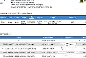 Historial de Larus Audouinii ATLB, remitido por EBD (Estación Biológica de Doñana).