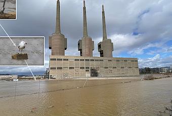 Zona inundada de las Tres Xemeneies frente al Mar de Sant Adrià de Besòs.