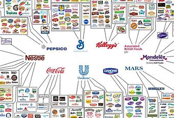 Específicamente en la industria de los alimentos, son 10 las empresas que dominan la mayoría de marcas importantes.