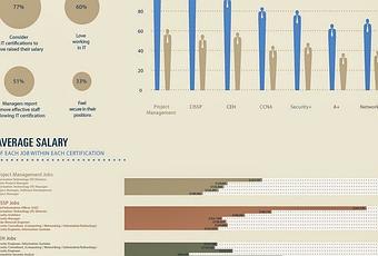 La siguiente infografía muestra las 7 mejores certificaciones que existen para el personal que labora en IT, también muestra los salarios promedios para cada una de ellas.