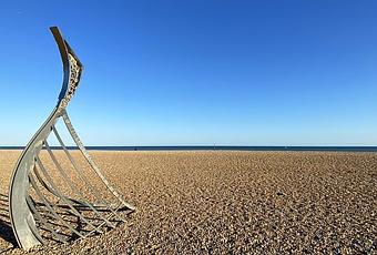 Escultura de lancha normanda en Hastings Beach | Derechos de autor de la foto: Bryan Dearsley