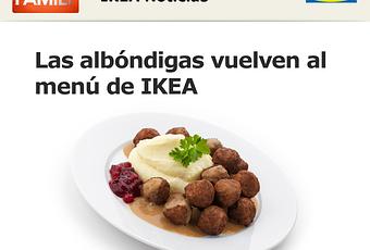 “Queremos celebrar contigo que las albóndigas vuelven al menú de los restaurantes IKEA”, pero no sé si podré volver a comer albóndigas de IKEA…Aunque me aseguren que están comprometidos en ofrecer alimentos de alta calidad y que se han puesto en marcha una serie de medidas para garantizar que esto no vuelva a suceder.
