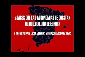 Los 17 gobiernos autonómicos son el cáncer de España y se mantienen únicamente porque los políticos quieren, por pura opresión y abuso de poder. La supresión de la parafernalia autonómica, intensa y crecientemente deseada por los españoles, es una reivindicación decente y justa que debe convertirse en la primera exigencia a sus gobernantes de un pueblo indignado y cansado de suportar abusos, impuestos desproporcionados e imposiciones de unos partidos políticos y de unos políticos profesionales que cada día se alejan más del servicio al pueblo y de la defensa del bien común para centrarse en sus propios intereses y en las distintas facetas de la corrupción y el oprobio.