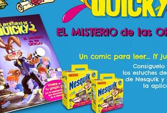 Nesquik, la conocida marca de cacao instantáneo, ha recuperado un cómic que se creó en formato papel hace unos 10 años para relanzarlo en formato digital, ahora el conejo Quicky compartirá sus aventuras con los niños a través de tablets o smartphones. La marca tiene claro su objetivo, captar la atención de los niños nativos digitales, aquellos que han crecido muy familiarizados con las nuevas tecnologías y los dispositivos de última generación, para ello nada mejor que lanzar la App Las Aventuras de Quicky. “El Misterio de las Ortigas”.