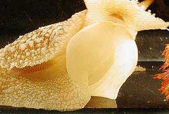 Intrigado, Gillette puso de nuevo unos minutos más tarde al mantón español en el acuario. Esta vez, el depredadorPleurobranchae no hizo nada más que una aspiración antes de dar la espalda a la potencial comida.