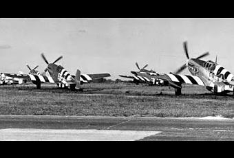 El plan para dotar a los aparatos con estas franjas se aprobó el 17 de mayo de 1944 debido a los derribos de 23 C-47 Dakota durante la invasión de Sicilia, por fuego amigo. El 1 de junio se empezó a familiarizar a las tripulaciones con estas marcas, pero no se dio la orden de pintar las franjas a las unidades de transporte de tropas hasta el 3 de junio y las de combate y bombardeo hasta el día 4.Las bandas se aplicaron a los cazas, aviones de reconocimiento, transporte de tropas y planeadores y bombarderos ligeros de dos motores. En los bombarderos pesados de cuatro motores de la Octava Fuerza Aérea estadounidense y de la RAF no se pintaron ya que había pocas posibilidades de que fueran confundidos, pues la Luftwaffe carecía de aparatos de eses tamaño.