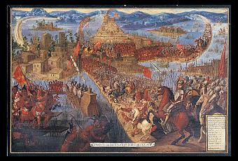 Cuándo: año 1521Dónde: Tenochtitlan, capital del Imperio Azteca o Mexica (actual ciudad de México DF)Contendientes: unos mil doscientos españoles, menos de cien de ellos a caballo, comandados por Hernán Cortés, aliados a unos 300 mil indígenas de Tlaxcala, Texcoco y otras ciudades-Estado y comunidades sometidas al Imperio Azteca versus unos 60 mil defensores de Tenochtitlan, comandados por el huey-tlatoani (rey) Cuauhtémoc.Resultado: Victoria de los españoles y sus aliados, fin del Imperio Azteca. Porqué es importante: Los indígenas de Tlaxcala o Texcoco seguramente creían que tras librarse del poder azteca podrían deshacerse de los españoles, que eran numéricamente muy inferiores, pero las enfermedades que se abatieron sobre ellos y la superioridad tecnológica de los españoles dieron a estos el control efectivo de todo el antiguo imperio y de incluso más tierras de la zona. La conquista de la mayor ciudad de América, Tenochtitlan, y de su imperio, tan sólo tres décadas después de la llegada a América, supuso para los españoles un gran impulso para la conquista y colonización del continente.