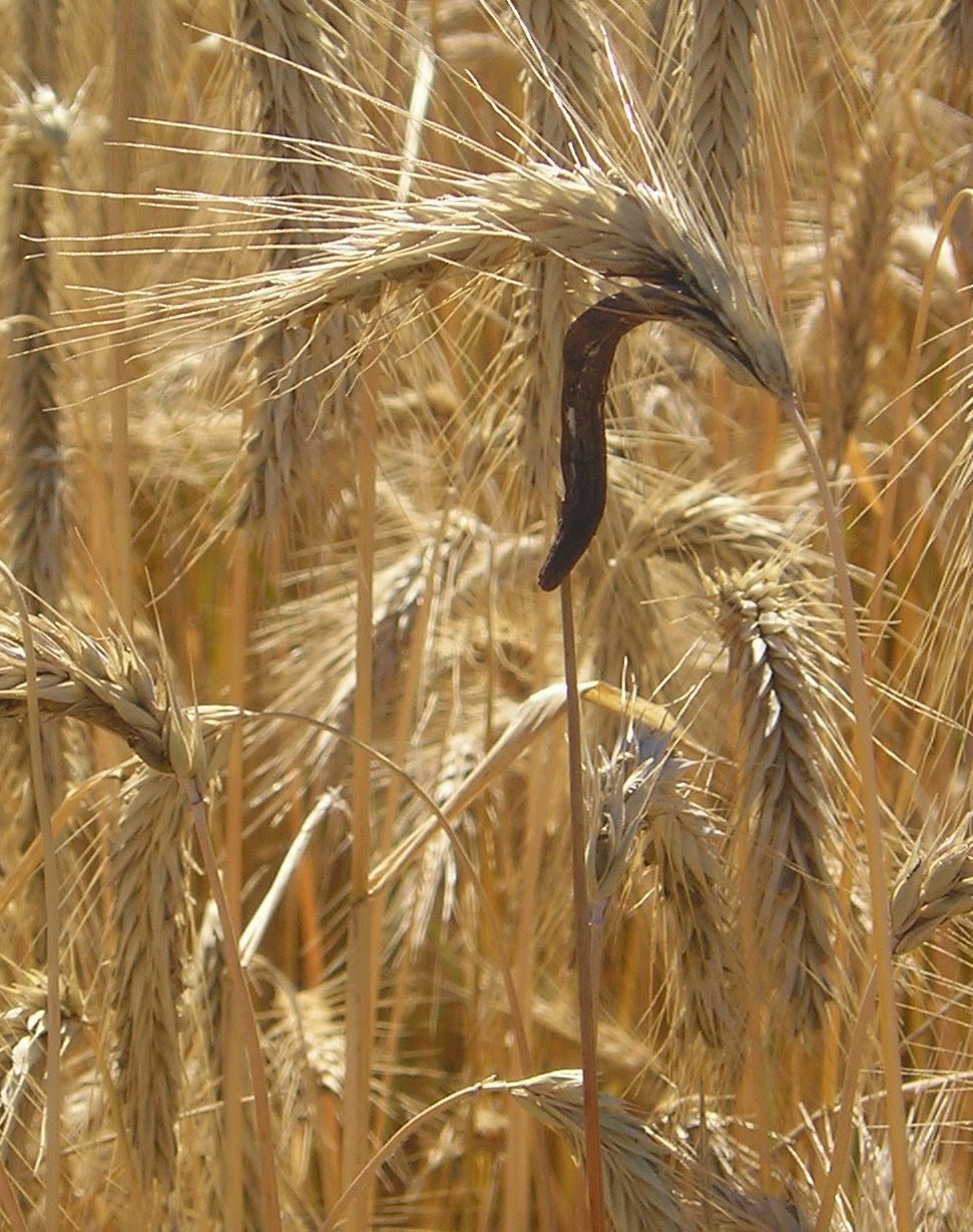 Muy interesante todo ¿pero qué tienen que ver con los saurópodos?El año pasado se encontró en unas minas de Myanmar un ámbar fosilizado que data de hace unos 97-110 millones de años, durante el periodo Cretácico medio, cuando en la Tierra dominaban las coníferas y los saurópodos, dejando a la sombra a los nacientes pastos y mamíferos. El fósil contenido en el ámbar es el de una pequeña flor de un pasto primitivo (lo que sitúa el origen de la familia de las poáceas -pastos- más atrás de lo pensado), que está cubierta por... ¡un cornezuelo fósil! Esta noticia acaba de ser publicada hará cosa de unas horas en el portal Phys.org.El hallazgo indica que la relación parasítica entre los pastos y los cornezuelos es de un abolengo muy viejo. Para el ser humano no hay plantas más importantes que las poáceas (los pastos), pues son la base de nuestra civilización misma, y la enfermedad del cornezuelo es una de las tantas plagas que la humanidad ha conocido desde sus inicios... pero el hongo ya existía con los pastos desde hace millones de años. La ergotamina ha sido la causa de muchas epidemias, principalmente en la Edad Media, así como infecciones a otros animales de granja, como al ganado; pocos hongos han logrado trascender en la historia de la humanidad como Claviceps purpurea, y todo parece indicar que no somos sino una víctima más de su milenaria lista.