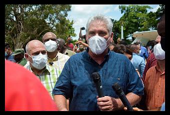 El Primer Secretario del Comité Central del Partido y Presidente de Cuba, Miguel Díaz-Canel Bermúdez, estuvo en San Antonio de los Baños, y compareció ante la TV pública cubana, desde donde se dirigió al pueblo.Durante sus declaraciones, el Jefe de Estado denunció la participación de la administración estadounidense en las acciones de desestabilización política históricas que tienen lugar contra Cuba, y que se han intensificado, particularmente, durante la pandemia. Ilustra con ejemplos concretos sucedidos entre 2020 y 2021, años particularmente difíciles en los que el bloqueo económico, comercial y financiero contra la Isla se ha endurecido hasta la crueldad.