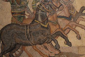 Mosaico que representa una cuadriga de la factio prasina (los verdes), siglo III dC, desde