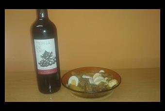 El maridaje fue con albondigas de rabo de toro y siendo un autentico placer, para un vino cuyo precio no llega a 3 €.