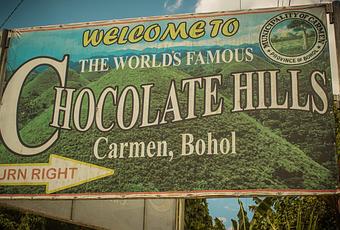 Según cuenta la leyenda, había dos gigantes, uno que venia del sur y otro del norte. Los dos reclamaban esas tierras, entonces comenzaron a luchar por ellas. Se empezaron a tirar con pedazos de tierra que recogían del suelo. Tan larga fue la lucha que al final los dos cayeron muertos. Una vez caídos los dos gigantes, los habitantes del lugar se acercaron y vieron como había quedado el campo de batalla. Raras colinas se erigían al largo del terreno, producto de los terrones que los gigantes se habían tirado, y como su color era marrón parecían colinas hechas de chocolate. Así es como nacieron las Chocolate Hills.