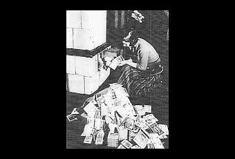 Debido a la subida imparable de precios ( un sándwich que constaba un día 14.000 marcos pasaba al día siguiente a costar 40.000 marcos ), había que añadir cada vez más ceros a los billetes, llegaron a circular billetes de 100 billones de marcos. Así los billetes con menos ceros, emitidos no hacía muchos días o incluso horas, pasaban a no valer nada. No es de extrañar que la gente los usase como combustible para la calefacción, como papel de empapelar la casa, o que los niños jugasen en la calle con ellos. La mayoría de gente perdió todos sus ahorros, y el estado dejó de recaudar impuestos, ya que simplemente había que retrasar el pago unos días para que lo que tenías que pagar ya no era casi nada. La Hacienda se hundió, y el gobierno, cada vez con menos ingresos, se financiaba exclusivamente a base de imprimir más y más billetes ( las imprentas no daban a basto ). La pobreza, el pillaje, los saqueos y revueltas se extendieron como la pólvora. La gente no entendía como de un día para otro se veían en esa situación de miseria y caos.