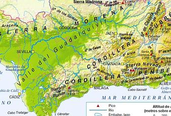 En Sierra Nevada estás la cumbre más altas de la Cordillera y de la Península, el Mulhacén (3481 m.). Muy cercano a él se encuentra el pico Veleta (3392). Otras sierras importante: Ronda (1919), Baza (2269), Gador (2322), Filabres (2166 m.), Las Estancias (1718)....El glaciarismo tuvo importancia únicamente en Sierra Nevada; de todas formas el modelado glaciar, debido a su situación bastante meridional, fue débil. En el Cuaternario existieron doce pequeños glaciares, el más largo apenas llegó a los 4 Km.También se pueden encontrar algún resto de vulcanismo en torno al Cabo de Gata