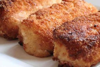 - Una vez que la masa está fria, podemos utilizar una manga pastelera o croquetero para dar forma a las croquetas. Las rebozaremos pasando por pan rallado, huevo, pan rallado y freiremos en aceite caliente.