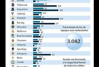 - Las deudas del fútbol han agitado hoy la actualidad política en una época de duros recortes, desoladoras cifras del paro, fuerte presión por el déficit y sacrificios en empresas y trabajadores. Los clubes profesionales adeudan a la Agencia Tributaria 752 millones de euros. La suma ha crecido en 150 millones en los últimos cuatro años.Las cifras no son ninguna estimación. Son datos ofrecidos por el Gobierno y actualizados a fecha de 1 de enero de 2012. Los clubes dePrimera mantienen una deuda de489.930.880,80 euros, los deSegunda de184.180.499,29 eurosy los equipos a los que se engloba bajo la categoría de 'No quinielas' (a partir de Segunda B) deben a Hacienda 78.185.978,49 euros."Aquí no queda reflejado todo el dinero que los clubes profesionales de fútbol deben a la Administración General del Estado, ya que a las deudas con la Agencia Tributaria hay que sumar las existentes con la Seguridad Social y el Gobierno nunca ha facilitado estos últimos datos" "Alguien no ha ejercido su labor de control. Esto es una mala noticia para millones de personas que vencómo pierden su vivienda y sufren recortesmientras se ha sido tremendamente generoso con los clubes de fútbol" EL MUNDO.ESPREGUNTA MUY INGENUA: ¿Por que parecen sorprendidos e indignados los partidos políticos? ¿No lo sabían? ¿No lo permitieron? ¿Nos toman por tontos?