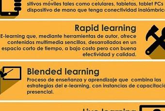 - Rapid learning: E-learning que, mediante herramientas de autor, ofrece contenidos multimedia sencillos, desarrollados en un espacio corto de tiempo, a bajo costo pero con buena efectividad y calidad.