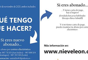 ABONOS-PREPAGO-ESQUÍDescargaPara los nuevos abonados se han habilitado tres números de contacto para solicitar información (San Isidro, 987 731 115; Valle Laciana – Leitariegos, 987 688 104, y León, 987 292 191) y tres correos electrónicos a los que remitir la documentación ([email protected], [email protected], [email protected]). Los ya abonados que tengan carta de pago deberán efectuar el ingreso en la cuenta bancaria, mientras que los ya abonados que no dispongan de carta de pago deberán seguir la tramitación por correo electrónico establecida para los nuevos usuarios. Además de los teléfonos y los correos de contacto, en las páginas web de las estaciones se informa de todo el proceso. El plazo para sacar el abono prepago se prolongará hasta el 16 de este mes.