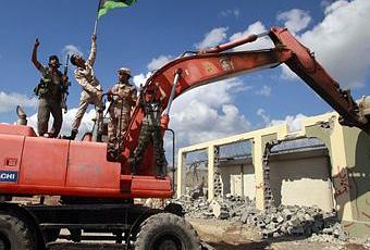 "Dios es el más grande. Esto es por la sangre de los mártires" es lo que gritaban las personas que estaban in situ, acompañado de disparos al aire procedieron a la demolición del complejo Bab al Azizyah.