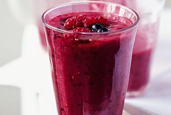Para dos raciones, batir todos los ingredientes y servir en vasos helados: