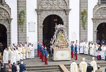 La Romería-Ofrenda a la Virgen del Pino representa uno de los principales rituales de las fiestas. Las ocho islas y los 21 municipios de Gran Canaria convergen en la Plaza de Teror para ofrendar a la Virgen carretas y cestos llenos de productos de la tierra. No se trata solo de una ofrenda religiosa, sino de un acto de generosidad y solidaridad porque toda la recolecta va directamente hacia ONG´s y otras entidades de carácter social.
