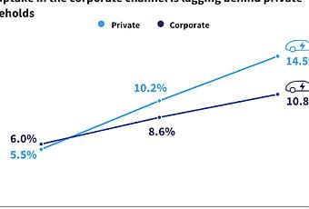 Pero Europa se está perdiendo actualmente esta gran oportunidad. El mercado automotriz más grande de la UE se está quedando atrás en cuanto a electrificación. En 2022, el 10,8 % de los coches corporativos nuevos eran vehículos eléctricos de batería (BEV) en comparación con el 14,5 % del mercado privado, y esta brecha no hace más que crecer.