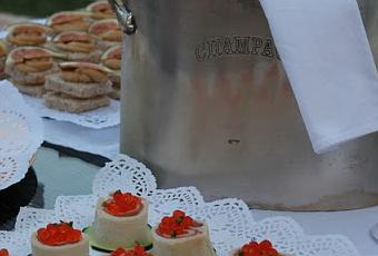 Tomaremos " Rulos de Salmón con huevas y crema de Yogur", " Bocados de Manzana y Pavocurry" y " Montaditos de Foié con Brevas de Albatera".