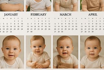 Elegir doce imágenes parece fácil, pero pronto descubres que cada foto tiene su propio peso emocional. Una sonrisa, un gesto curioso, el primer baño o ese día que salió la primera palita de pelo. Cada mes puede convertirse en un capítulo.