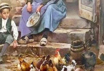 Alexandre Le Carpentier: Dando de comer a las gallinas.
