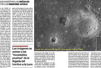 Artículo publicado en el Suplemento Dominical "El Zoco" de Diario Córdoba el domingo 25 de septiembre de 2011. La imagen es una composición de las fotografías de la superficie lunar obtenidas por la sonda “Lunar Reconnaissance Orbiter” de los lugares de alunizaje de las misiones Apolo 17 (arriba) y Apolo 12 (abajo) y mostrando las huellas dejadas por los astronautas. Crédito de la imagen: NASA, Goddard, ASU..