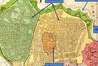 El plano de Barcelona en el s. XVIII es un buen ejemplo de lo que he indicado más arriba: La ciudadela y las murallas remodeladas se yuxtaponen a la ciudad romana y medieval.