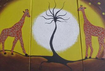 Triptico con paneles de 30 largo x 16 ancho aprox. de una pareja de jirafas al reencuentro en un atardecer. Elaborado en MDF, con pintura al frio. . a la venta (información por aqui...)hr />© Encontrarle sentido a la vida es ...sisi | es de uso personal, sí quieres hacer un uso comercial contactame al correo [email protected].