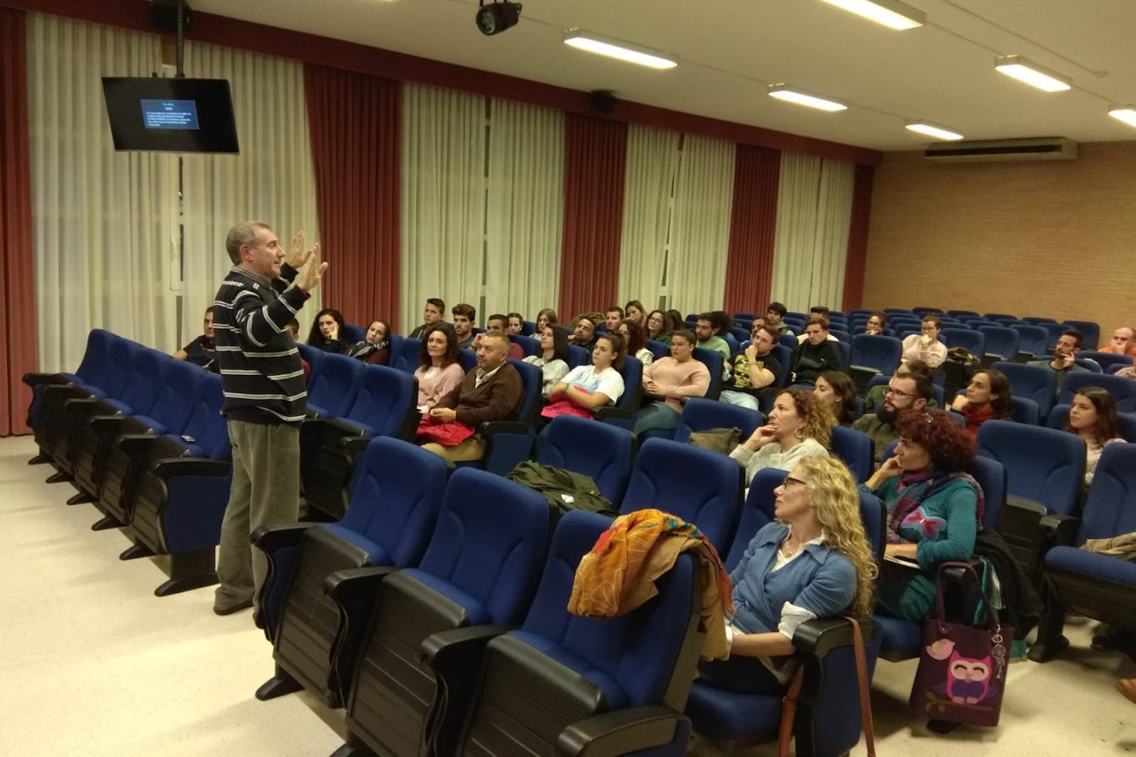 José María Toro, especialista en formación de equipos docentes y autor del libro que da nombre genérico al evento creado desde la UAL, ofrece la conferencia ‘La interioridad como movimiento hacia otra pedagogía’.Ha asistido a todas las ediciones hasta el momento y en esta ocasión se le ha encargado la intervención final, con la que se han clausurado cuatro días muy fructíferos. José María Toro publicó en el año 2005 el libro ‘Educar con co-razón’, del que ya van 20 ediciones en la calle y del que salió el nombre de unas jornadas coordinadas por Esther Prados, profesora del Área de Didáctica de la Expresión Corporal del Departamento de Educación de la UAL. Este año “ha sido muy especial”, en palabras de la propia Prados, puesto que se ha presentado el libro que resume las diez primeras ediciones: “Desde que pensamos en plasmar por escrito todo lo que se ha generado de contenido hasta que lo hemos fraguado han pasado dos años, así que, en estas duodécimas jornadas dar a conocer ‘Otra Pedagogía en Movimiento’, con todas las personas que han contribuido estando presentes en el acto, ha sido muy entrañable y conmovedor”.