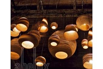 Con cartón ondulado procedente de bosques sostenibles y materiales reciclados es posible crear bellas lámparas de techo o de sobremesa con un cuidado diseño, fabricadas de forma artesanal y que proporcionan una iluminación cálida y tamizada.