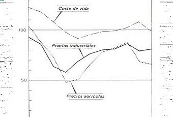 Hemos visto la gran caída de los precios agrícolas en Estados Unidos durante la Gran depresión. Pues bien, uno de los objetivos del New Deal fue elevar los precios agrícolas que permitieran a los agricultores mejorar su nivel de vida, aumentar su capacidad de demanda (necesaria para reactivar otros sectores económicos) e invertir para modernizar de la agricultura. Las Leyes fueron novedosas (por ejemplo concedían subvenciones a los que redujeran voluntariamente algunos productos, algo que hoy más entendible). Sin embargo, si obervamos la gráfica vemos que si se consiguió que subieran los precios agrícolas hasta equipararse a los industriales. Cuando el New deal entró en crisis, debido a que el Tribunal Supremo declaró anticonstitucionales algunos aspectos de las Leyes Agrícolas, los precios volvieron a caer.