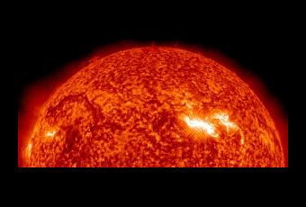 Esta imagen fue capturada por el Observatorio de Dinámica Solar (SDO) el 10 de marzo de 2012 24:29 EST en longitud de onda de 304 Angstrom. Una región activa del Sol, vista anteriormente como el punto brillante a la derecha, se ha estado moviendo en la superficie del Sol de izquierda a derecha desde el 2 de marzo 2012. Designado como AR 1429, el lugar ha producido hasta ahora tres llamaradas de clase X y numerosos estallidos .Creditos: NASA / SDO / AIA
