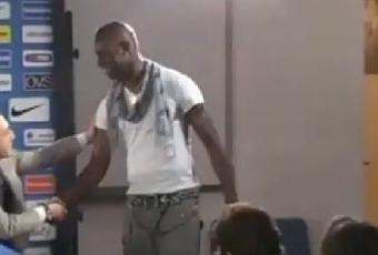 Hoy por la mañana, el equipo capitalino presentaba a Andrea Stramaccioni, su nuevo conductor en conferencia de prensa, cuando sucedió lo inesperado. Mario Balotelli ingresó por la puerta y, sin preguntarle a nadie, irrumpió en el salón para saludar al nuevo DT.