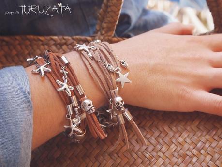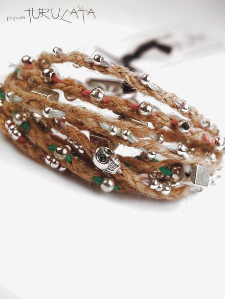 El lema del estilo ibicenco es "viste como quieras pero con estilo". La naturalidad, tanto en los materiales como en los colores, destacando el color blanco, son las dos características fundamentales de este ya internacional estilo típico de la isla de Ibiza.La cuerda de pita trenzada y el cordón de ante, en tonos arena, son los materiales básicos y naturales que hemos escogido para estas pulseras MALA VIDA de esta temporada de sol y calor de 2014. El toque clave son las estrellas, de mar y del cielo, siempre ligadas a la isla, y nuestro aporte personal son nuestras adoradas calaveras de metal plateado y otras cuentas metálicas redondas y cúbicas cosidas a mano con cordones de algodón de colores.Tienes tres modelos a elegir. Cúal es el que más te gusta?