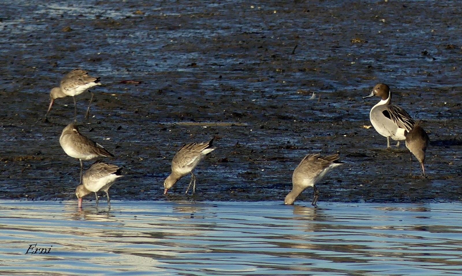 Aprovechando la bajamar las limícolas se alimentaban en las orillas.