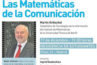 Martin Grötschel, catedrático de Tecnologías de la Información en la Universidad Técnica de Berlín, hablará mañana 17 de diciembre de cómo las matemáticas subyacen a las modernas tecnologías de la información en la conferencia “Las matemáticas de la comunicación”. La presentación correrá a cargo de Ingrid Daubechies, presidenta de la Unión Matemática Internacional y premio BBVA Fronteras del Conocimiento 2013. Será dentro del ciclo Matemáticas en la Residencia, a partir de las 19:30 en la Residencia de Estudiantes del CSIC.