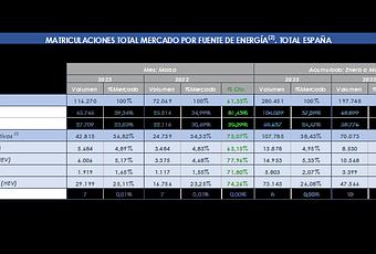 En cuanto al mercado de turismos electrificados, en marzo aumentan sus ventas un 60,6%, con 10.277 unidades vendidas. Los eléctricos de batería (BEV) crecen un 39,9% hasta las 4.322 unidades en el mes, al igual que los híbridos enchufables (PHEV) con un incremento en sus matriculaciones del 80,1% hasta las 5.955 unidades. Las ventas de turismos electrificados han supuesto el 10,3% de la cuota de mercado en marzo.