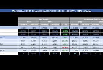 Así,que las matriculaciones de vehículos electrificados aumentan un 11,2% en agosto con 4.682 unidades, suponen el 7,5% de las ventas; en el acumulado del año, los vehículos electrificados suman el 8% del mercado total, con 51.804 unidades; y las matriculaciones de vehículos electrificados, híbridos y de gas alcanzan las 21.431 matriculaciones