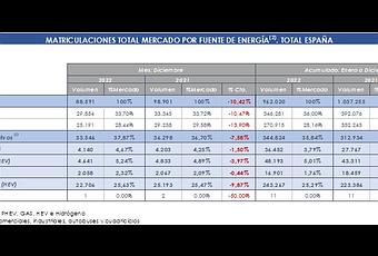 En cuanto al mercado de turismos electrificados, en diciembre se reducen sus ventas un 3,3%, con 8.051 unidades vendidas. Los eléctricos de batería (BEV) decrecen un 2,3% hasta las 3.420 unidades en el mes, al igual que los híbridos enchufables (PHEV) con un descenso en sus matriculaciones del 3,9% hasta las 4.631 unidades. En el último mes, los turismos electrificados suman el 10,89% del mercado total de turismos.