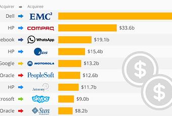 Dell, operación que posiciona a los "ex-fabricantes" de hardware en un completo proveedor de soluciones de informática integral, con una subliminal apuesta por las soluciones en la nube, el big data, los servidores, etc... creo que es una buena oportunidad para ver cuáles han sido las mayores adquisiciones de empresas en el sector tecnológico.