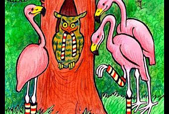 —¡Buenas noches, señores flamencos! Yo sé lo que ustedes buscan . No van a encontrar medias así en ningún almacén . Tal vez haya en Buenos Aires, pero tendrán que pedirlas por encomienda postal. Mi cuñada, la lechuza, tiene medias así. Pídanselas, y ella les va a dar las medias coloradas, blancas y negras.