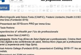 Durante la tarde de ayer tuvo lugar en la sede de la sociedad científica @camfic en Barcelona la presentación de las mejores Apps de Salud según el iSYScore en su tercera edición que con un programa titulado “Salud Digital, la perspectiva del profesional sanitario” se puso sobre la mesa el ranking de Apps para profesionales y pacientes y se dieron las claves para que una App funcione entre otros temas de interés de salud digital.