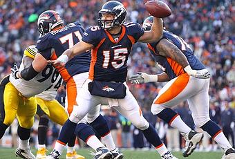 Sin duda uno de los partidos de playoffs más emocionantes en la historia de la NFL fue obra de este gran personaje. En el duelo de Wild Card de la AFC ante los Pittsburgh Steelers, los Broncos encaraban el partido con poca gente dándoles oportunidad de avanzar. Un enfrentamiento peleado que terminó yéndose a tiempo extra, pero que al final culminaría en el punto álgido de la fugaz osadía de Tebow.