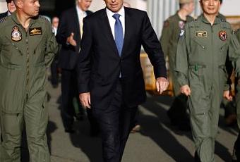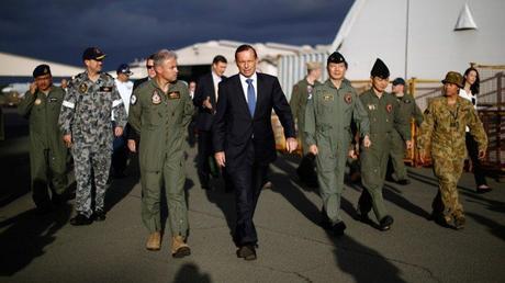 - l primer ministro de Australia, Tony Abbott, visita a los jefes de la misión internacional que busca al avión malasio desaparecido en el Índico
